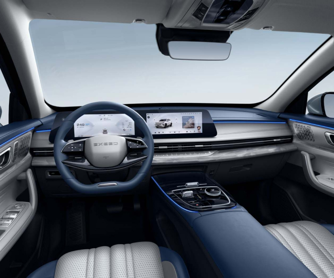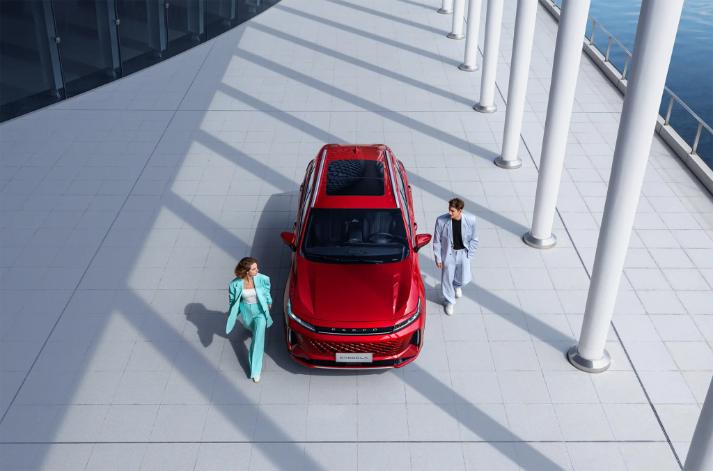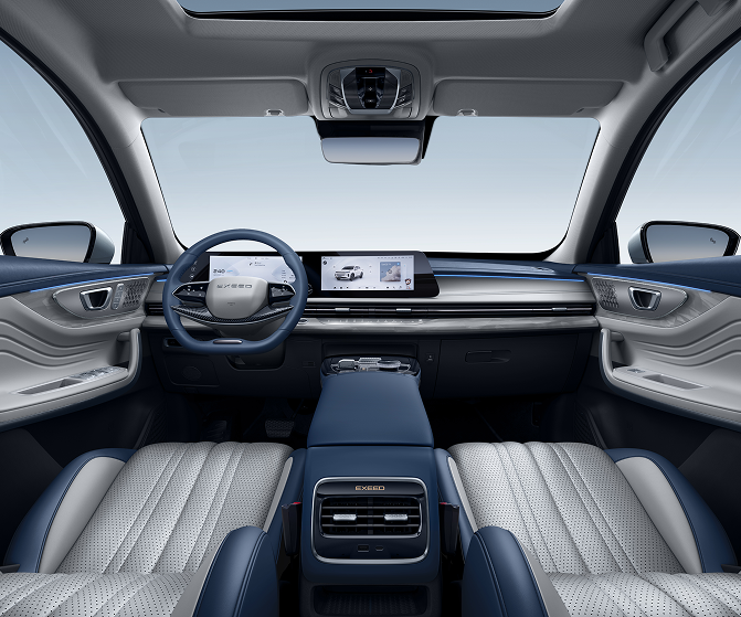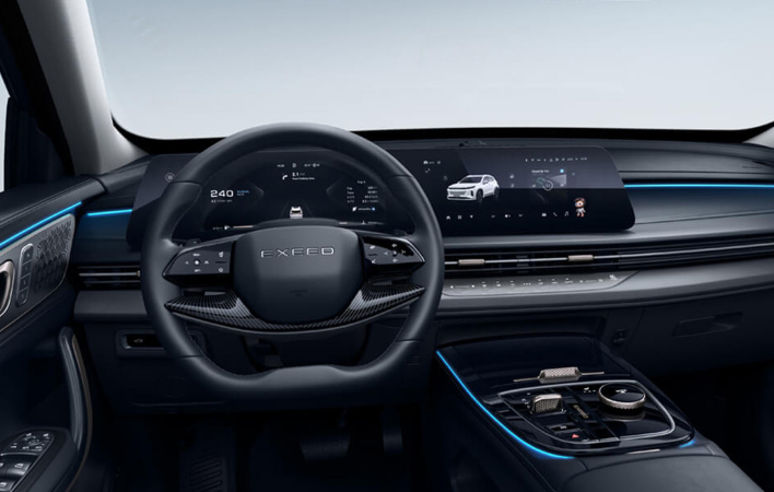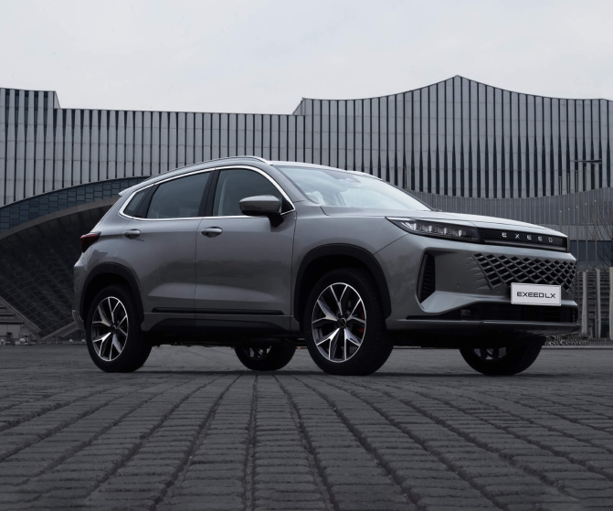 تتميز سيارة EXEED LX بواجهة أمامية جريئة وعصرية، حيث تظهر شبكة رأسية بتصميم أنيق من الكروم والأسود. ومما يعزز هذا التصميم المميز شبكة سداسية، ترفع مستوى الرقي والجاذبية الفاخرة. ويكتمل المظهر الفاخر بسقف بانورامي فخم ومحاور عجلات متميزة، مما يضفي على سيارة LX الهيبة والفخامة على الطريق.