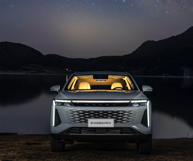 تتميز سيارة EXEED RX بمظهرها العصري الذي يجمع بين التصميم الرائع والتكنولوجيا الثورية. وإلى جانب روعته، يحقق كفاءة أفضل في استهلاك الوقود بفضل تصميمه وفق الديناميكيا الهوائية ونسبة الجسم الذهبية 0.618. تضيف الأضواء المضيئة للشعار ومصابيح الرأس المصممة بشكل مبتكر "∑" لمسة من الأناقة، بينما تمنح المقابض الإلكترونية المخفية وجناح السيارة الخلفي على شكل Warcraft مظهرًا جريئًا وعصريًا. لا بدّ أن تذهلك سيارة RX على الطريق بفضل تصميمها الذي يراعي أفضل أداء.