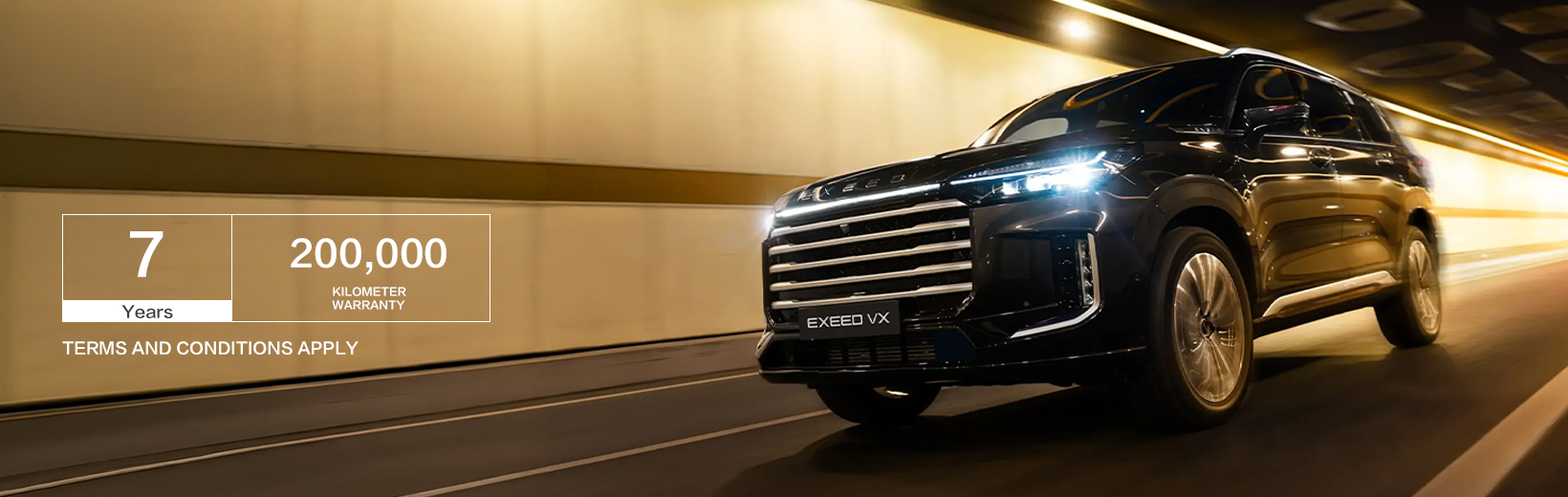 The EXEED VX makes a powerful statement with its luxurious design, featuring the striking Leonids front grille, chrome detailing, and fully LED head optics. The 20-inch two-toned alloy wheels paired with Continental tires enhance the vehicle’s dynamic presence, while the 1360 x 870 mm panoramic sunroof floods the cabin with light, creating a refined and elevated driving experience.