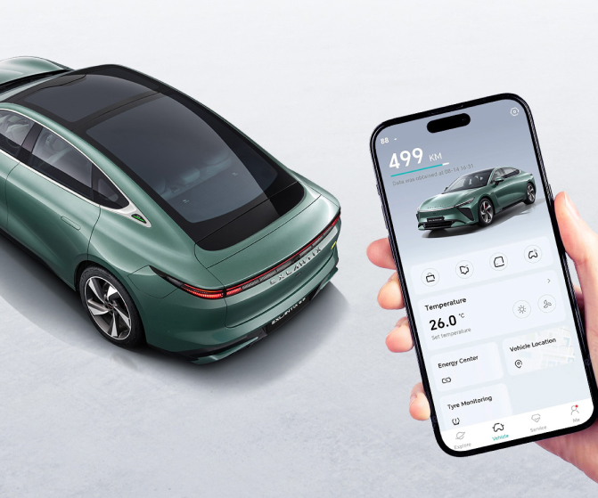 يتيح لك التحكم الذكي في المركبة من خلال التطبيق إدارة المناخ، والموقع، والشحن بكل سهولة من هاتفك المحمول.